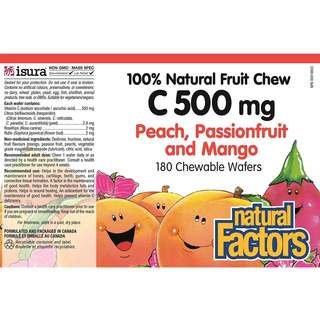 Natural Factors Vitamin C 500mg Peach, Passionfruit and Mango 180 Chewable Wafers