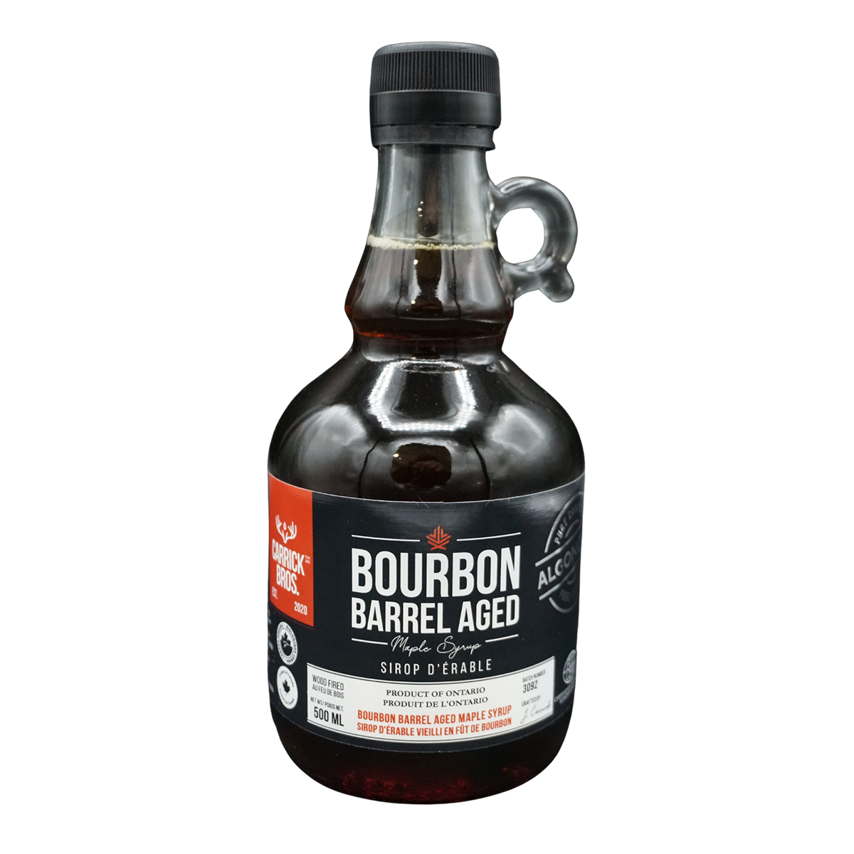 100% Pure Algonquin Organic Maple Syrup aged in Kentucky Bourbon Barrels.