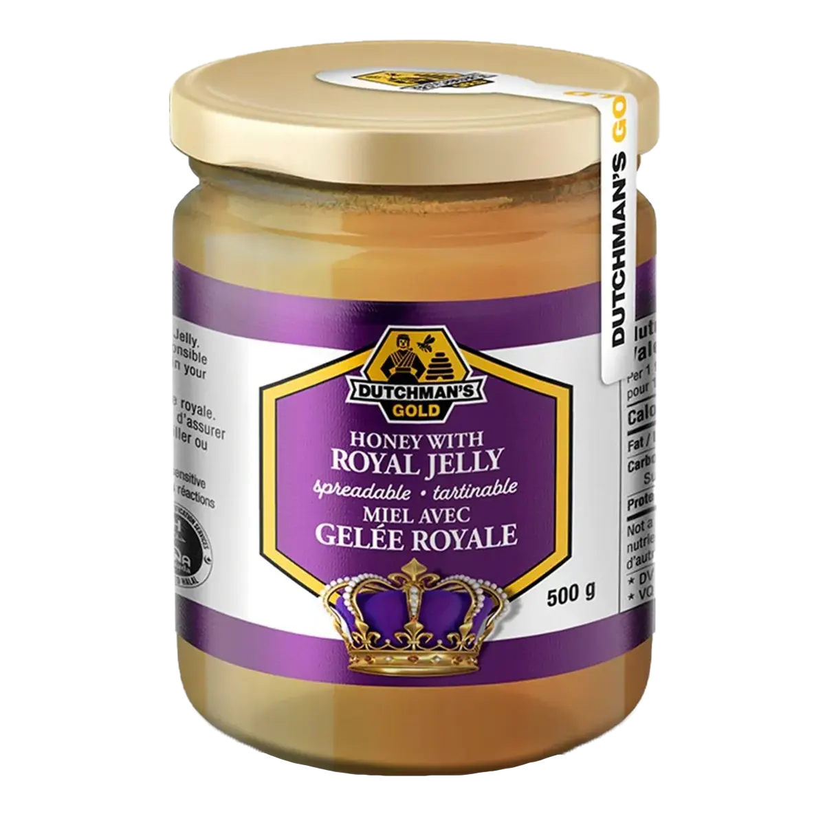 Isn’t nature amazing? This thoughtfully crafted blend strikes the perfect balance between our Royal Jelly and Dutchman’s Gold unpasteurized creamed honey, containing 2% royal jelly by weight (about 10 grams in a 500-gram jar). This honey is 100% Canadian, all-natural, and locally grown and harvested.