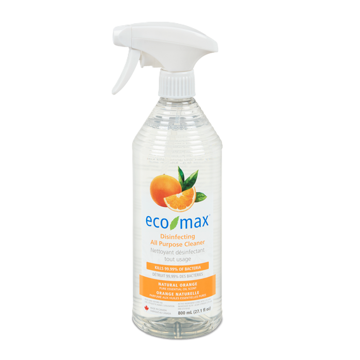 Eco-Max Disinfecting All Purpose Cleaner is Health Canada-approved to kill 99.99% of bacteria. This powerful, plant-based cleaner is bleach-free and quat-free, providing a safer cleaning experience throughout your home.
