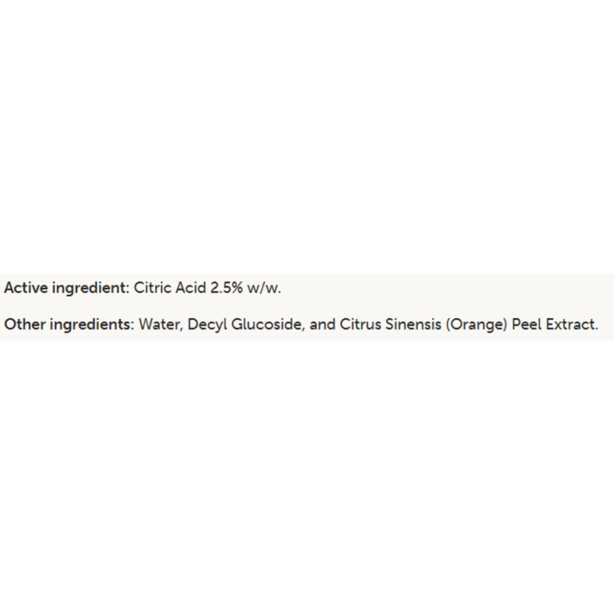 Water, Decyl Glucoside, and Citrus Sinensis (Orange) Peel Extract.