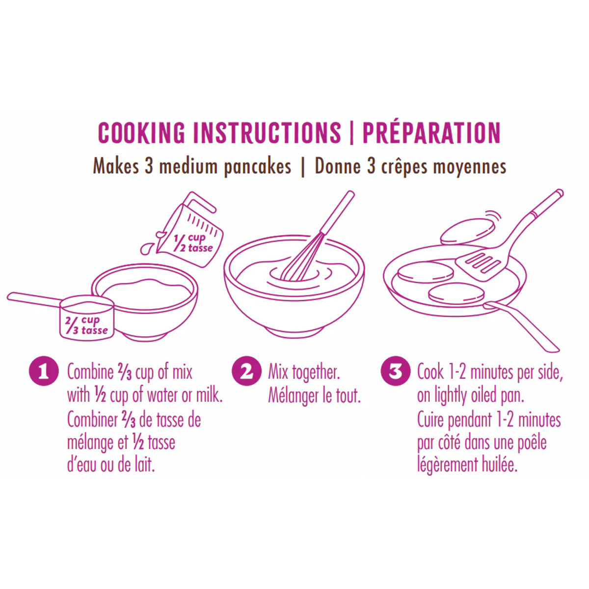 1. Combine 2/3 cup of mix with 1/2 cup of water or milk.