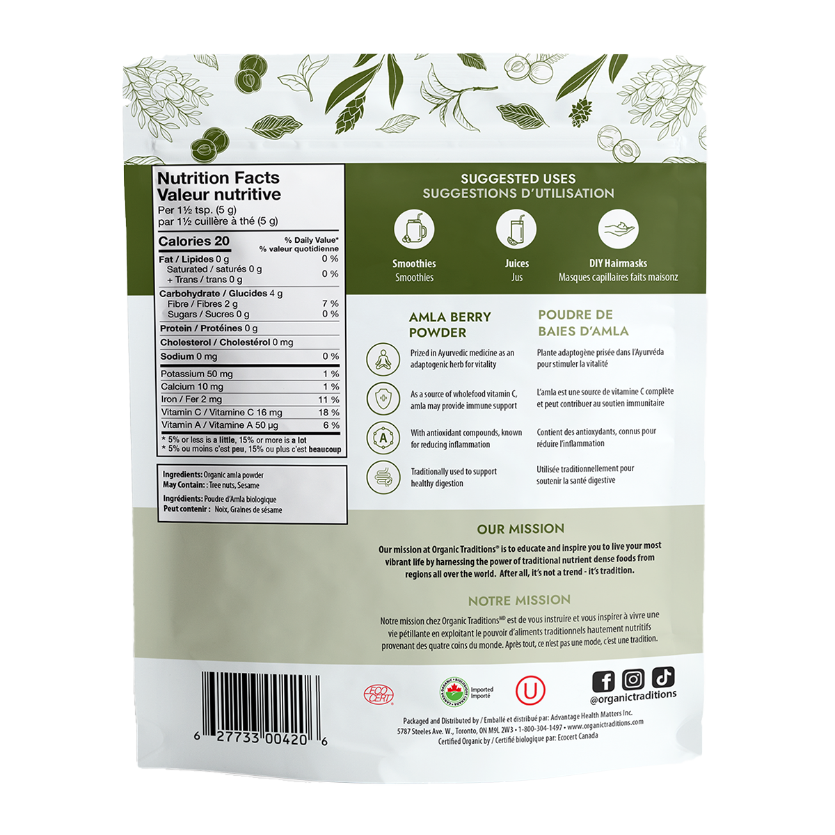 Amla Powder is perfect for smoothies, smoothie bowls, juices, and water.