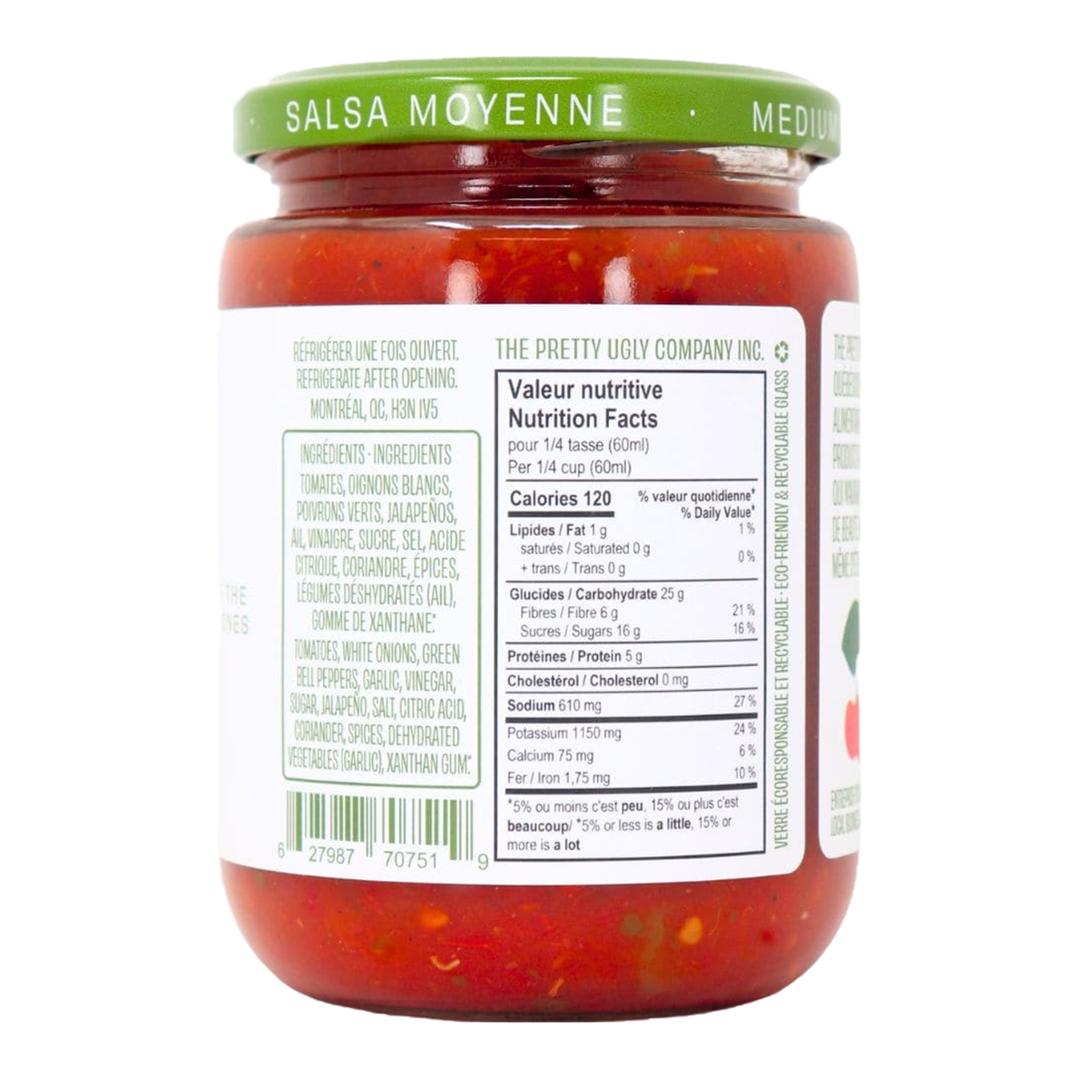 Fresh tomatoes, Green peppers, Onions, Jalapenos, Fresh garlic, Cilantro, 100% tomato paste, Mixed spices, Sugar, Citric acid.