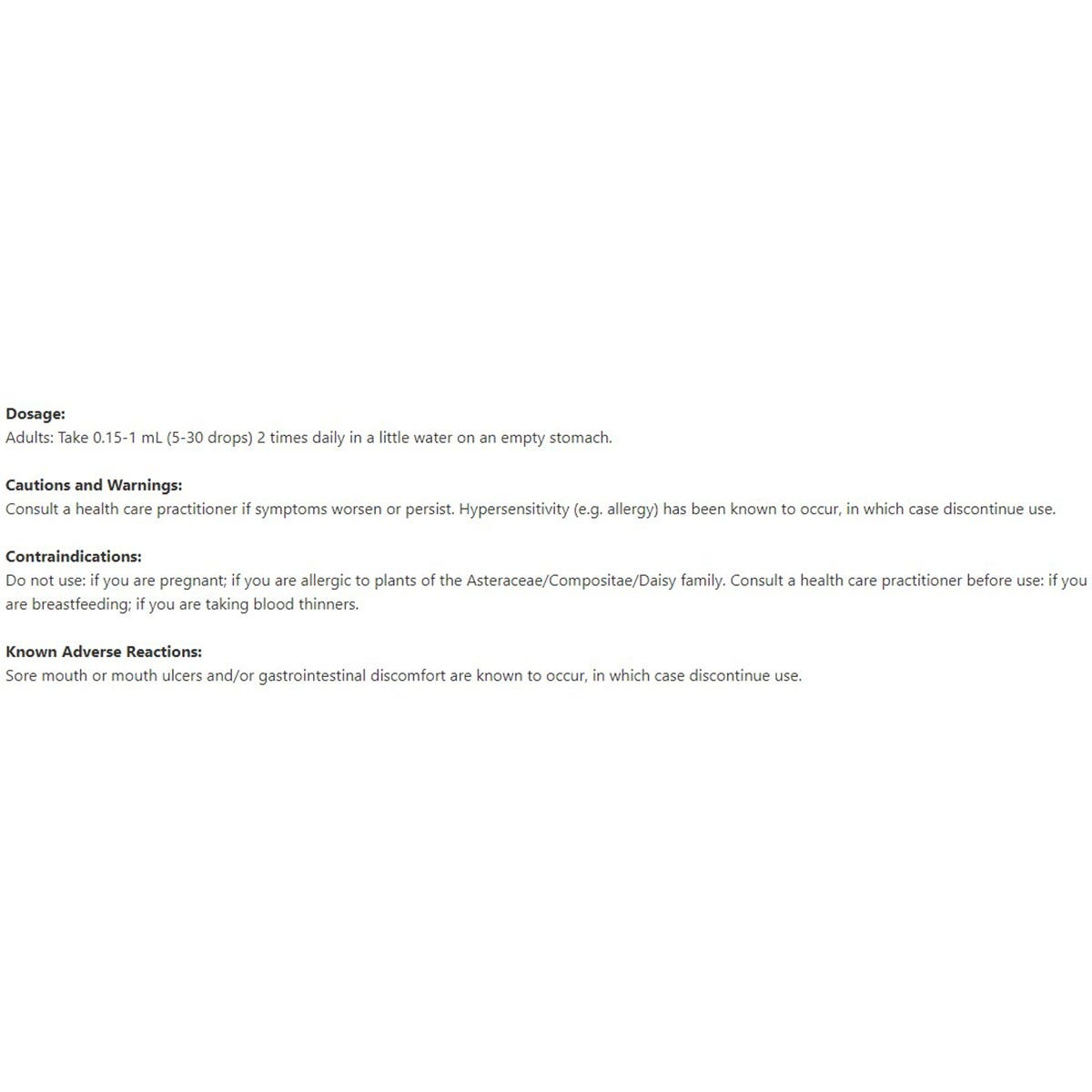 Do not use: if you are pregnant; if you are allergic to plants of the Asteraceae/Compositae/Daisy family. Consult a health Wellness-Care practitioner before use: if you are breastfeeding: if you are taking blood thinners.