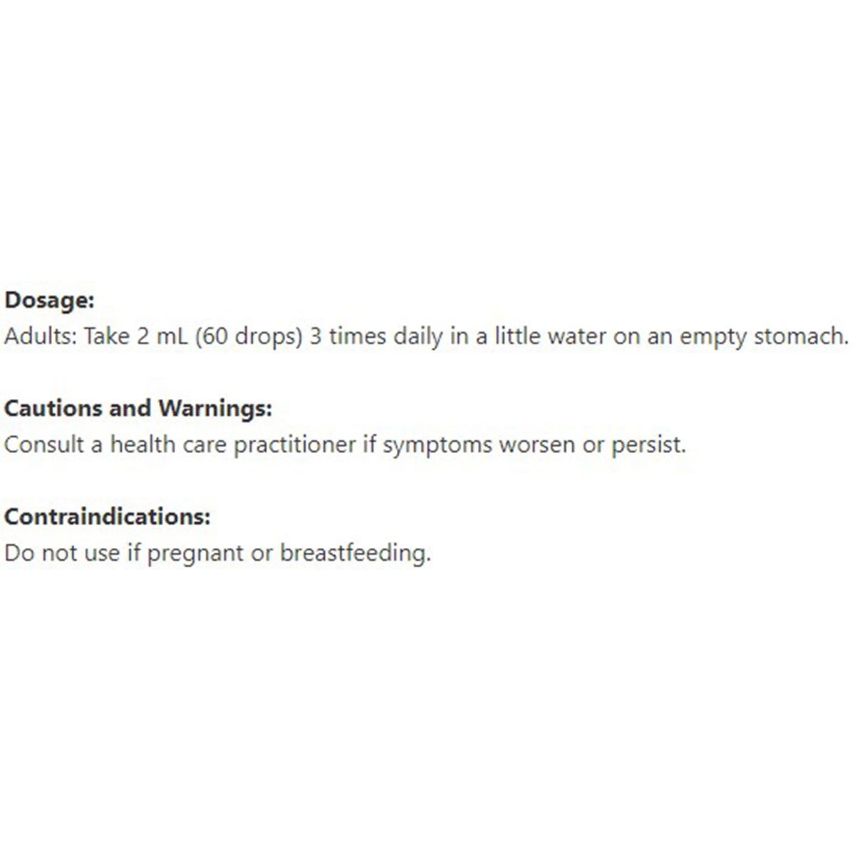 Adults: Take 2 mL (60 drops) 3 times daily in a little water on an empty stomach.