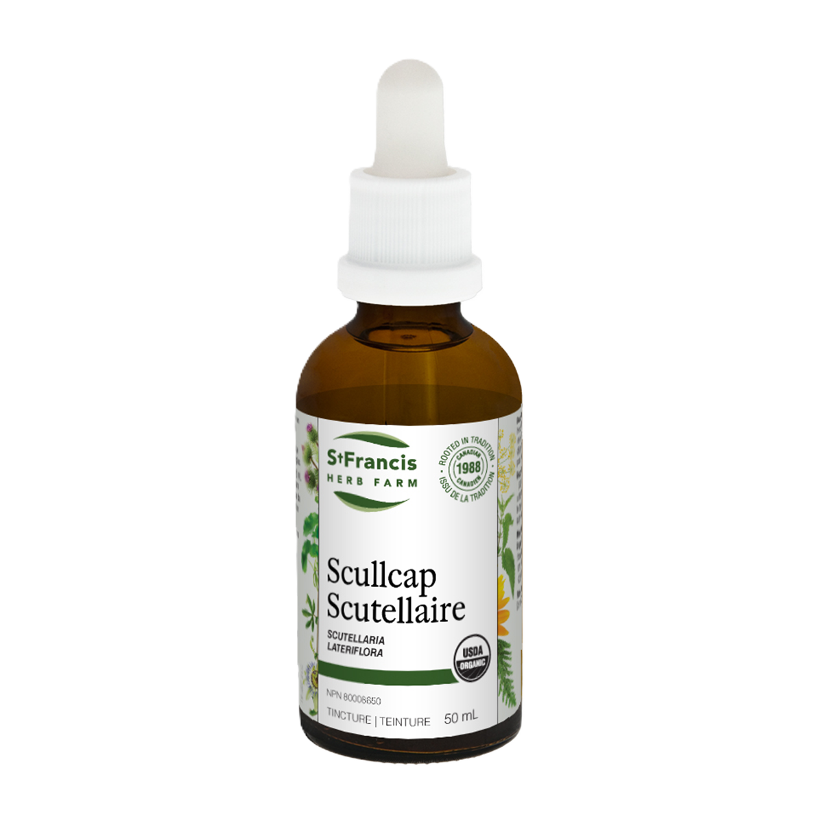 Certified Organic Scullcap (Scutellaria lateriflora, flowering tops).