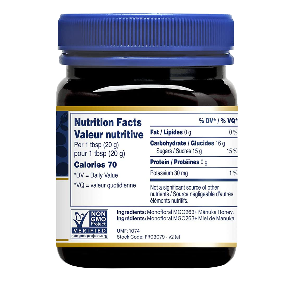 Manuka Health Manuka Honey MGO 263+ UMF 10+ with grade no. 1 amber honey.