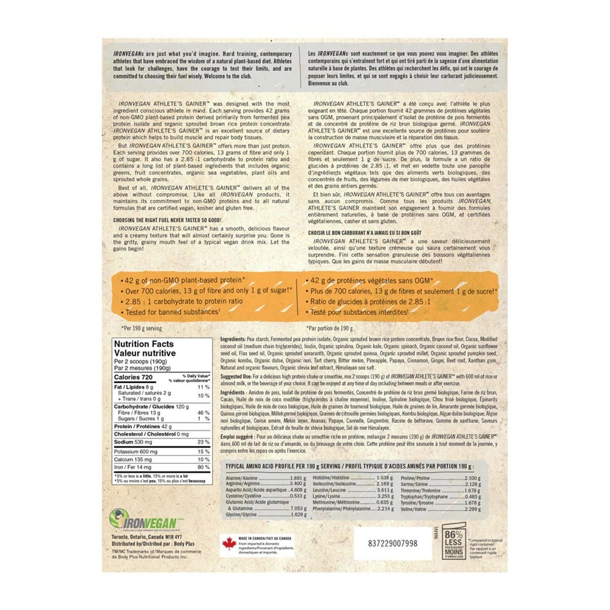 For a delicious high protein shake or smoothie, mix 2 scoops (190 g) of IRONVEGAN ATHLETE’S GAINER with 600 ml of rice or almond milk, or the beverage of your choice. It can be enjoyed at any time of day including between meals or after exercise.