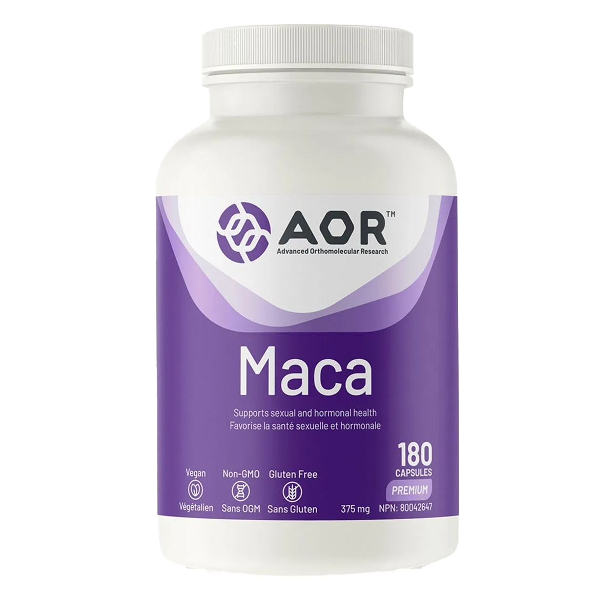 Maca (Lepidium meyenii), a mineral-rich cruciferous plant native to Peru, has roots that are traditionally consumed as a vegetable by indigenous peoples. Maca helps balance major steroid hormones such as estrogen, progesterone, and testosterone, adjusting hormone levels according to the individual's condition by elevating low levels and lowering excess levels. Health professionals report that Maca supports Intimacy function in aging men and women and helps normalize menopausal and premenstrual symptoms in women.