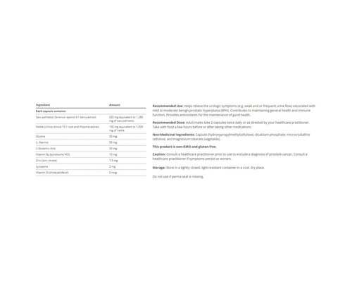 Consult a healthcare practitioner prior to use to exclude a diagnosis of prostate cancer. Consult a healthcare practitioner if symptoms persist or worsen.
