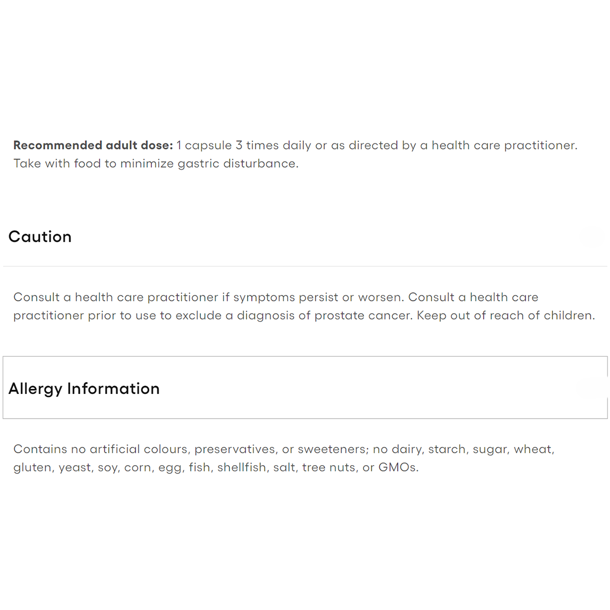 Consult a health Wellness-Care practitioner if symptoms persist or worsen. Consult a health Wellness-Care practitioner prior to use to exclude a diagnosis of prostate cancer. Keep out of reach of children.