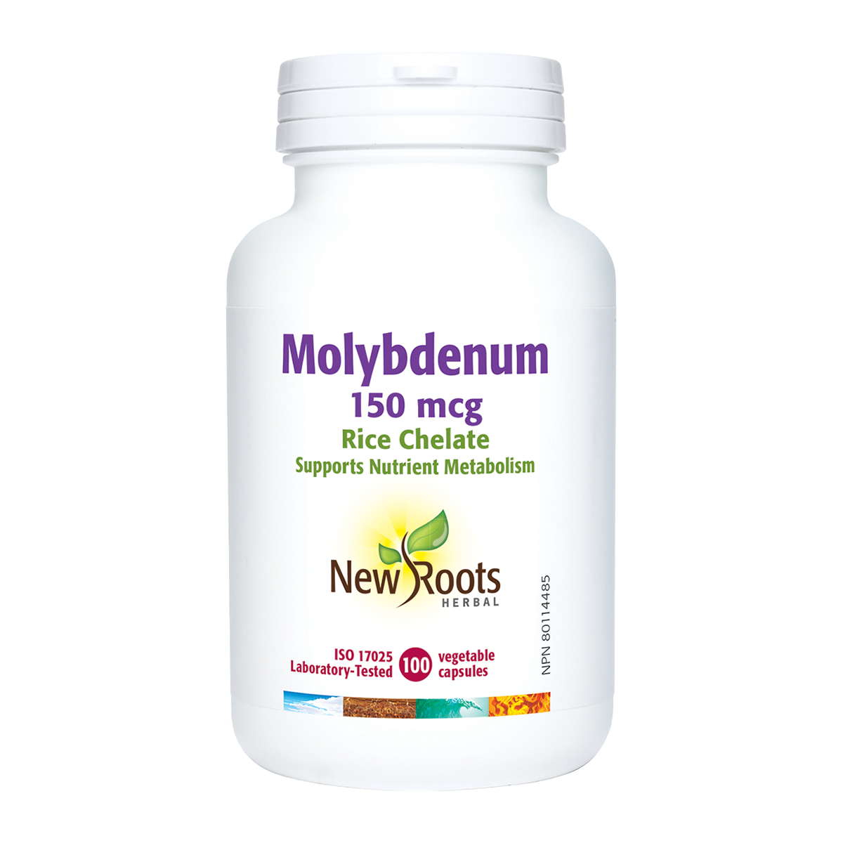 Molybdenum (rice chelated) from New Roots Herbal binds with amino acids to enhance intestinal absorption and bioavailability. Addressing a diagnosed deficiency with a low-dose intervention of 150 μg per capsule can be an effective approach.