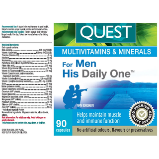 Quest His Daily One Multivitamins & Minerals for Men 90 Capsules