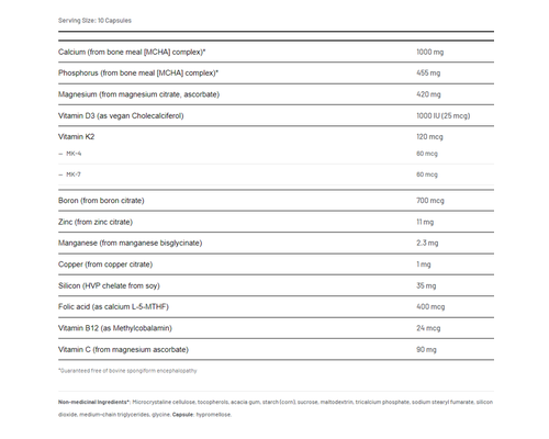 Ortho Bone is a serious bone health product for serious bone health Aid, with a dose of 10 capsules per day delivering 1000 mg of elemental calcium.