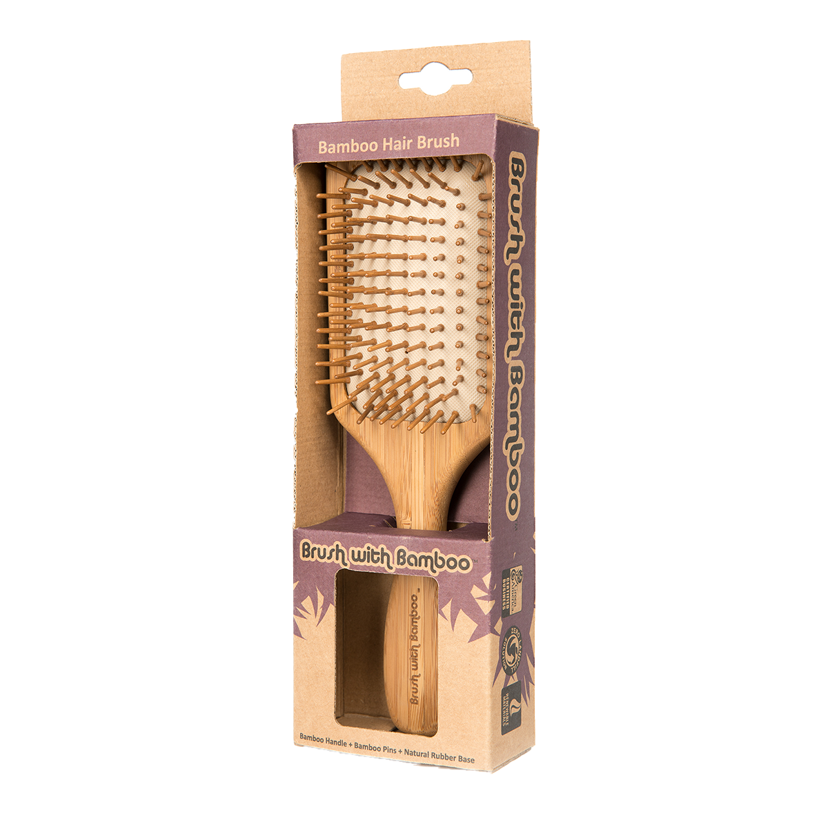 This bamboo hair brush is a zero waste alternative to hair brushes made with synthetic materials. It has a natural and luxurious feel, and functions exactly like conventional hair brushes.