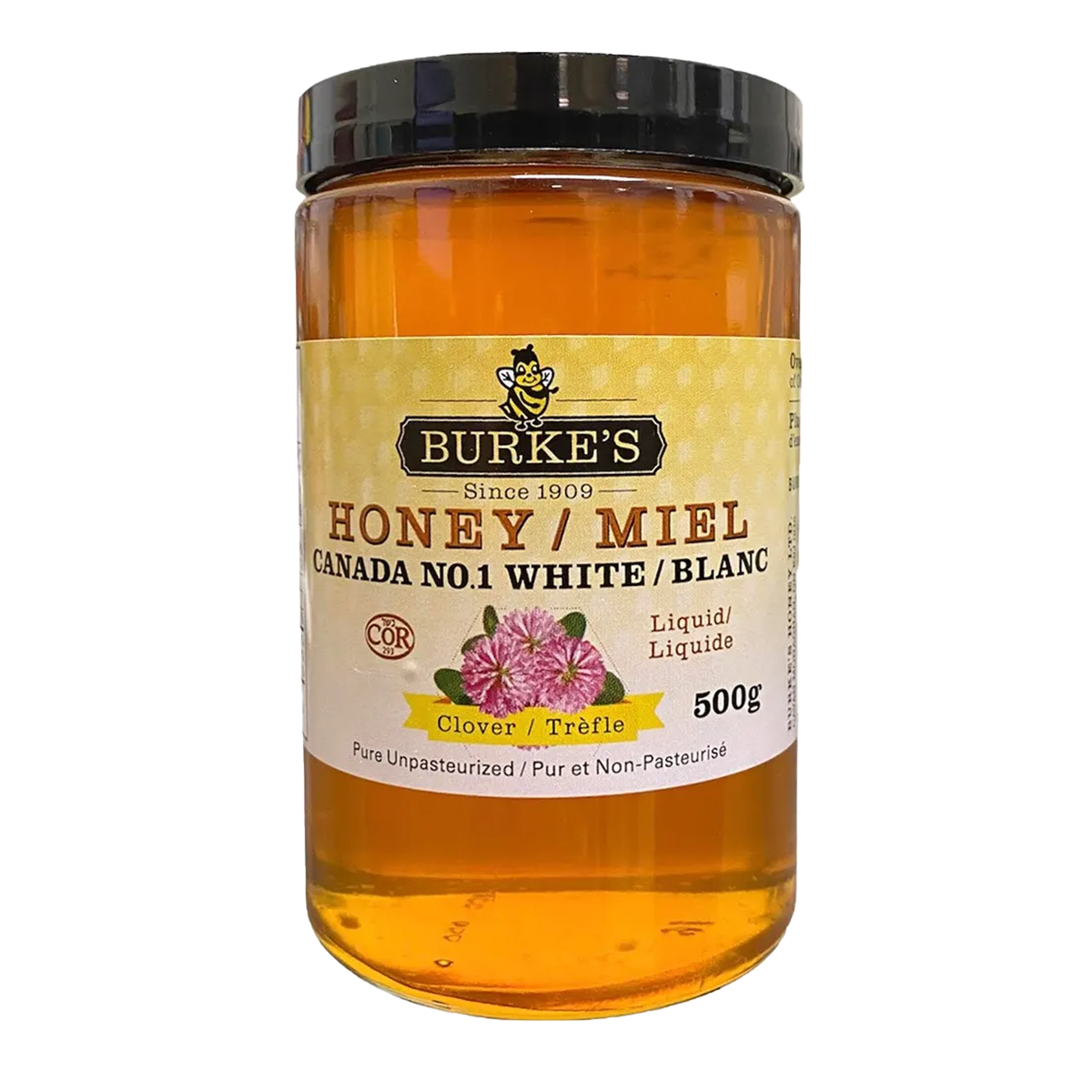 Burke's Clover Liquid Honey contains the light-coloured, mild flavour clover liquid honey that Canada is famous for. It's great on bread or a bagel, on a muffin or in baking. It's also a great topping on ice cream! Add a sprinkle of crushed nuts and it's a simple and delicious honey nut sundae. Try a bit of clover honey and old cheese on your favourite cracker.