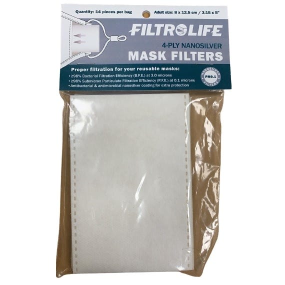 Filtrolife Mask Filters 4-Ply Nano Silver 14 Packs