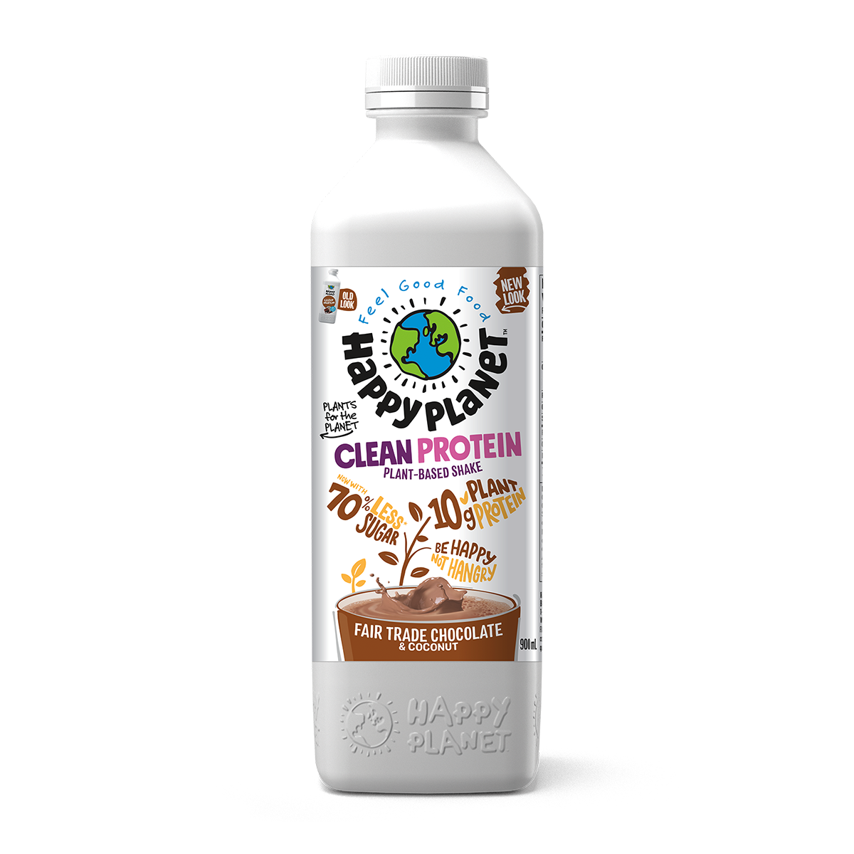Happy Planet Fairtrade Chocolate and Coconut Clean Protein Smoothie features 70% less sugar and 10 grams of plant-based protein, perfect for banishing those midday hunger pangs! Enjoy a guilt-free chocolate treat blended with creamy coconut for ultimate satisfaction—more protein, less sugar, and the best of both worlds!