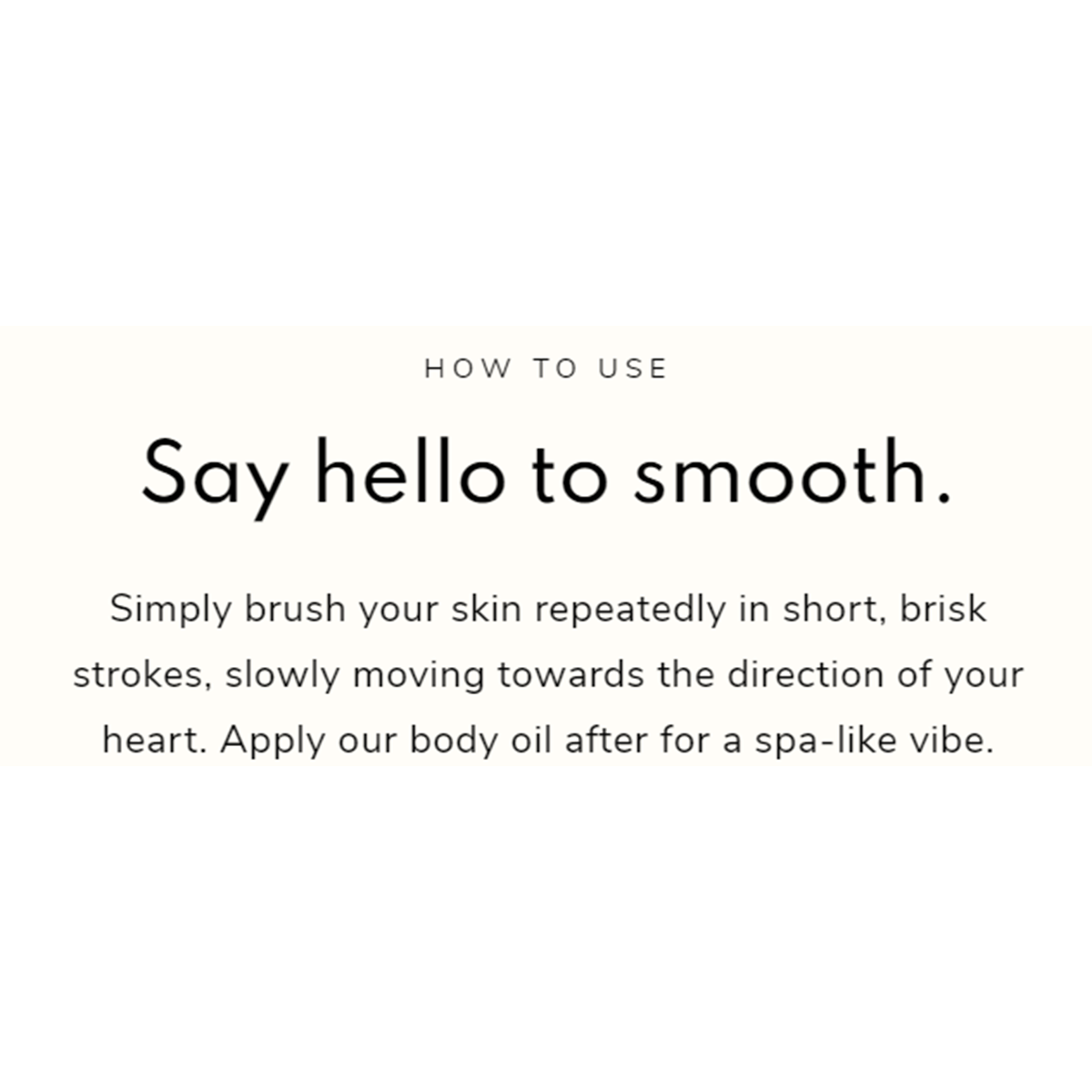 Simply brush your skin repeatedly in short, brisk strokes, slowly moving towards the direction of your Cardio Health. Apply our body oil after for a spa-like vibe.