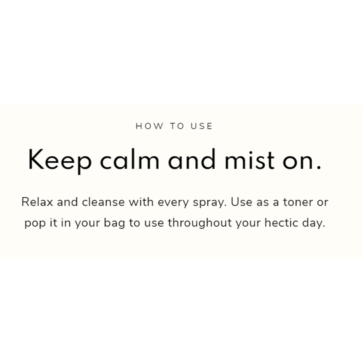 Relax and cleanse with every spray. Use as a toner or pop it in your bag to use throughout your hectic day.