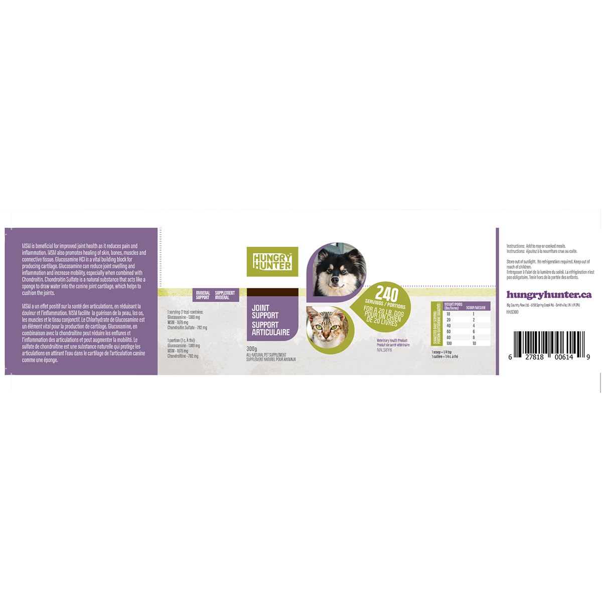 MSM is beneficial for improved joint health as it reduces pain and Inflammation SM also promotes healing of skin, bones, muscles and connective tissue, Glucosamine HD is a vital building block for producing cartilage. Glucosamine can reduce joint swelling and inflammation and increase mobility, especially when combined with Chondroitin Chondroitin Sulfate is a natural substance that acts like a sponge to draw water into the canine joint cartilage, which helps to cushion the joints.