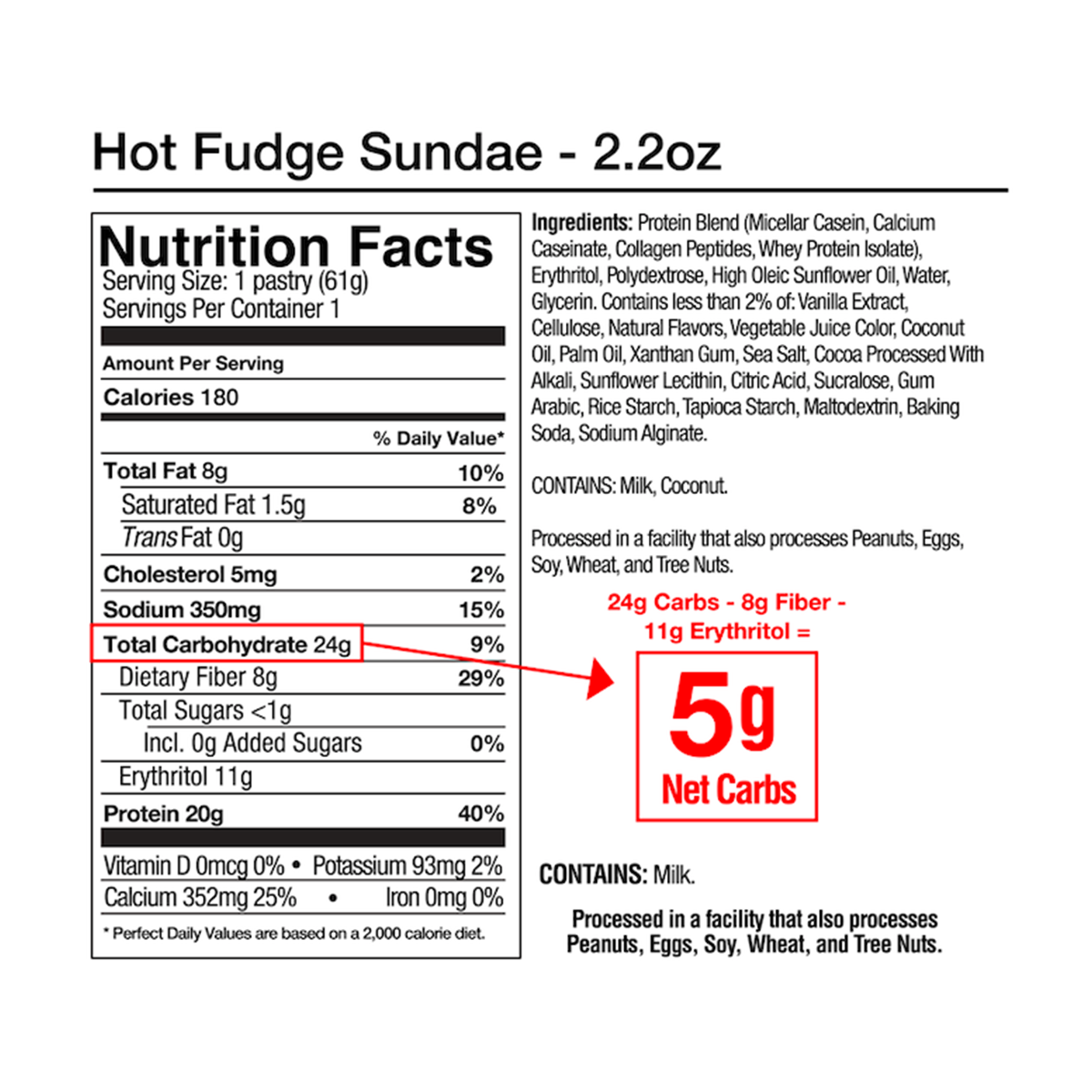 All the dreamy, chocolatey richness of a hot fudge sundae baked into a fun-to-eat pastry. And the cherry on top? 20g complete protein and only 5g net carbs.