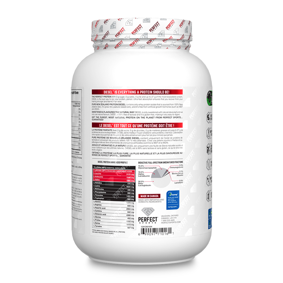 What’s more, due to the advanced purification process employed by PERFECT Sports, almost all lactose is removed from our DIESEL® New Zealand Whey Protein Isolate. Thus, making our DIESEL formula extremely easy to tolerate for those sensitive to lactose.