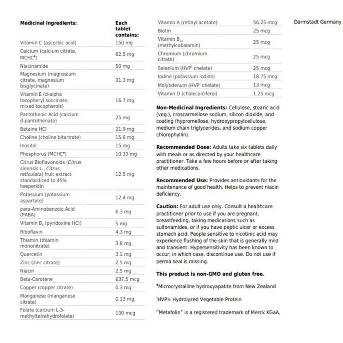 Metagenics Multigenics Intensive Care Without Iron 180 Tablets
