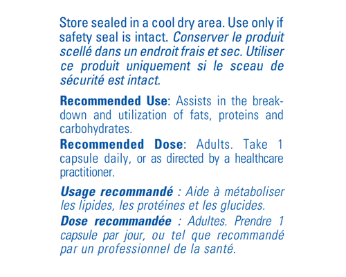 Assists in the break-down and utilization of fats, proteins and carbohydrates.
