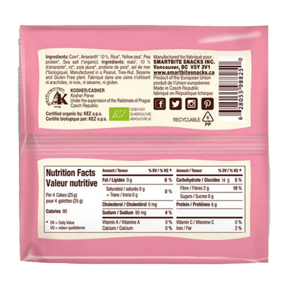 Organic corn, organic amaranth, organic rice, organic yellow pea, organic pea protein, sea salt