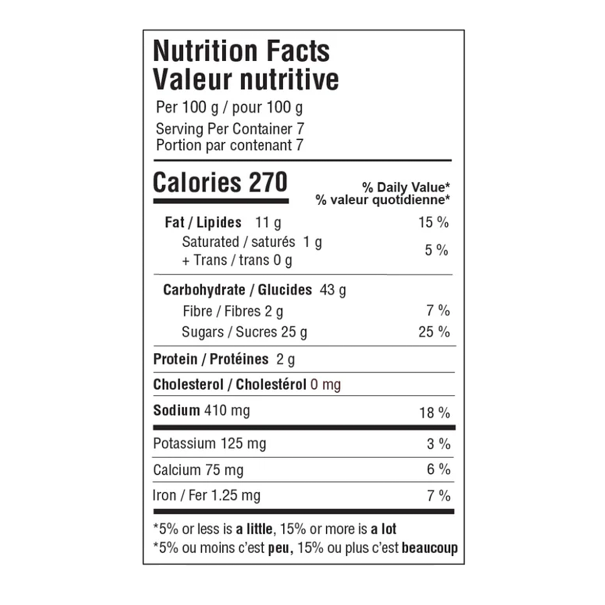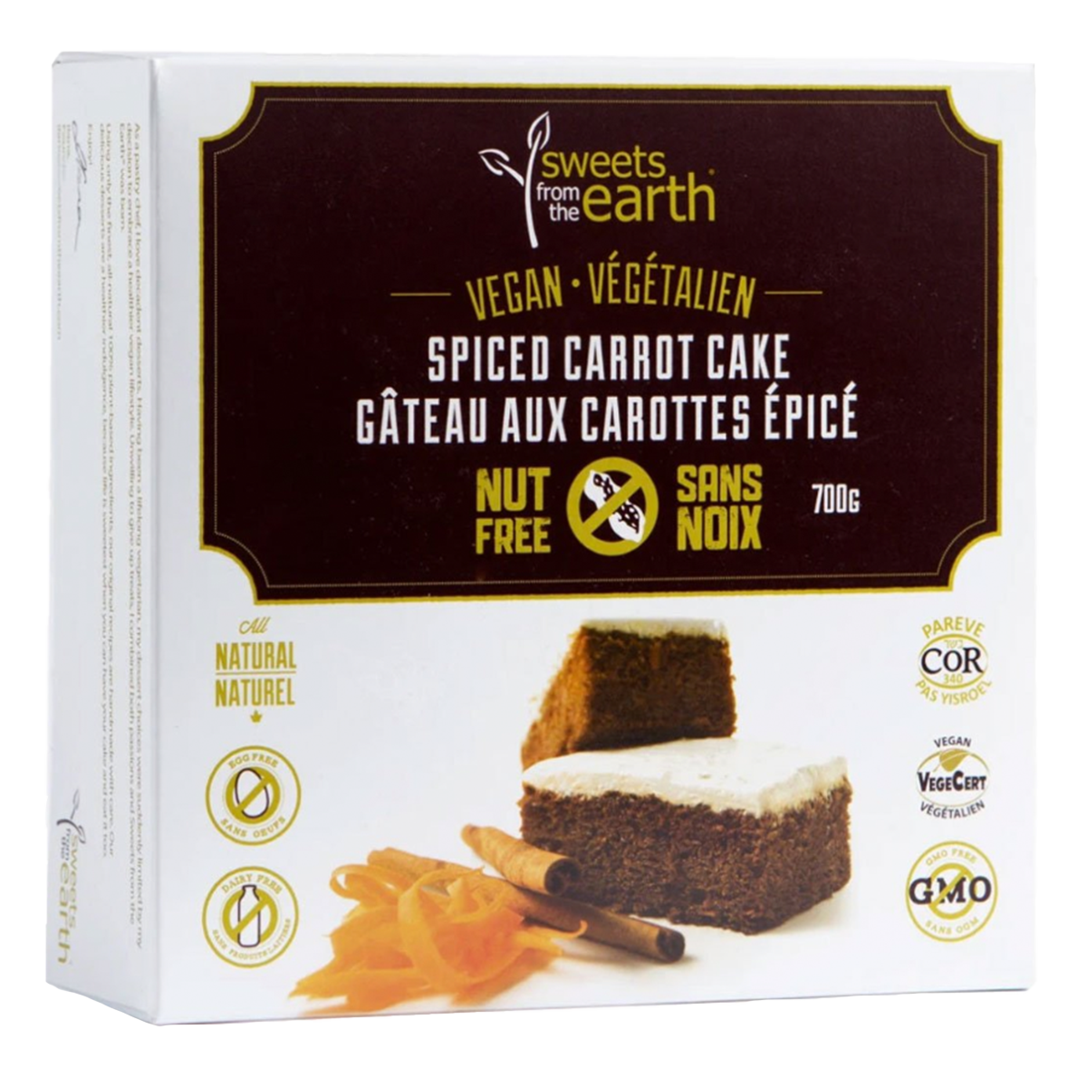 Organic carrots, Organic cane sugar, Soy-based cream cheeze base (Filtered water, Sustainable palm oil, Maltodextrin, Non-GMO soy protein, Non-GMO tofu, Non-dairy lactic acid, Sugar, Blend of natural gums {Locust bean, Guar, Xanthan}, Salt), Organic unbleached wheat flour, Sunflower oil, Organic soy beverage, Tofu, Organic flax seeds, Baking soda, Non-alum baking powder, Cinnamon, Sea salt, Allspice, Nutmeg, Vanilla bean paste.