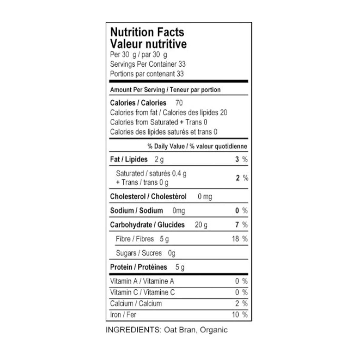 Pleasantly surprised by the quality of this organic oat bran. Made in Canada, which only adds to its appeal. Perfect for a healthy breakfast!