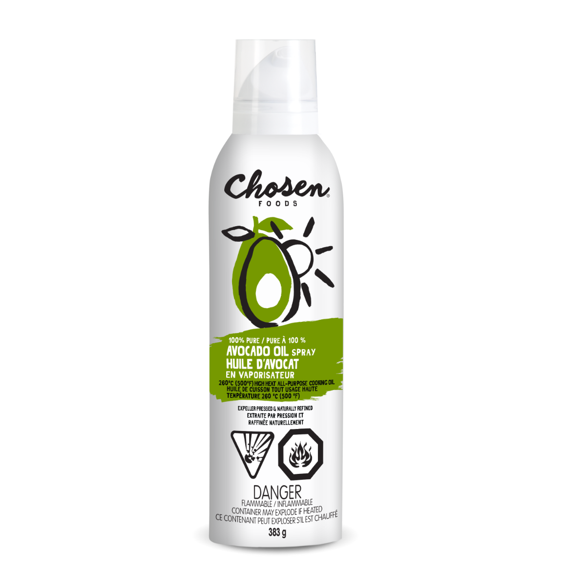 This 100% pure Avocado Oil Spray is the perfect kitchen companion, offering you versatility and a high smoke point. We consider it a kitchen workhorse. Using an expeller-press method, we extract the maximum amount of high-quality oil from the avocado without applying excess heat or chemicals. The result? A neutral flavor profile that adds a bit of sunshine to all of your cooking projects. Every bottle of Chosen Foods Avocado Oil is 100% pure, non-GMO, and glyphosate residue-free.