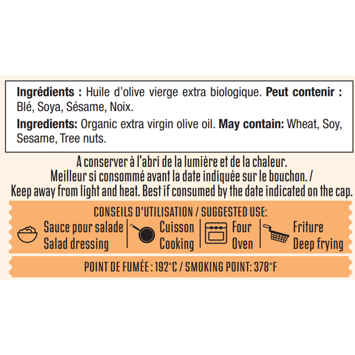 Organic extra virgin olive oil.