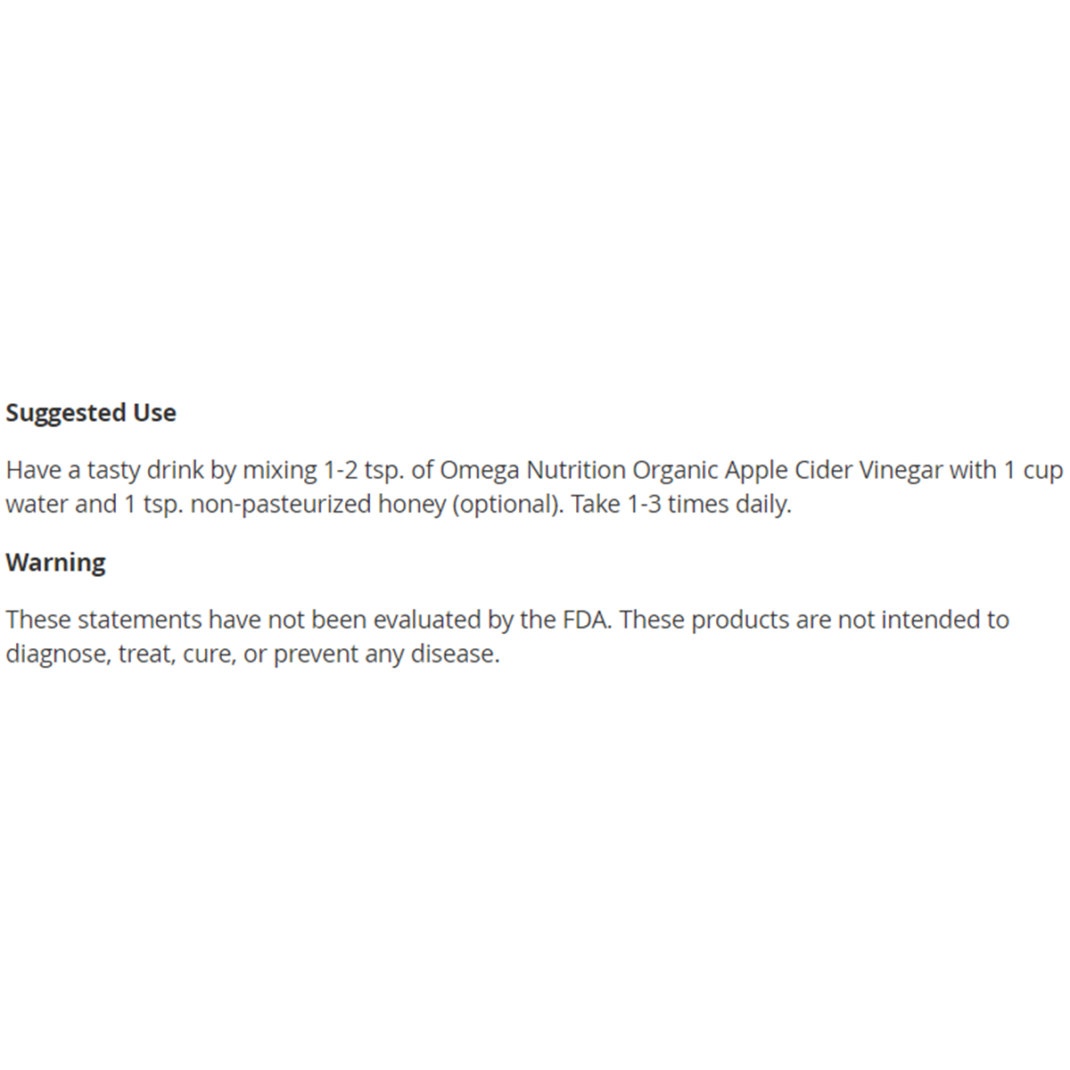 Omega Nutrition Organic Apple Cider Vinegar 355mL