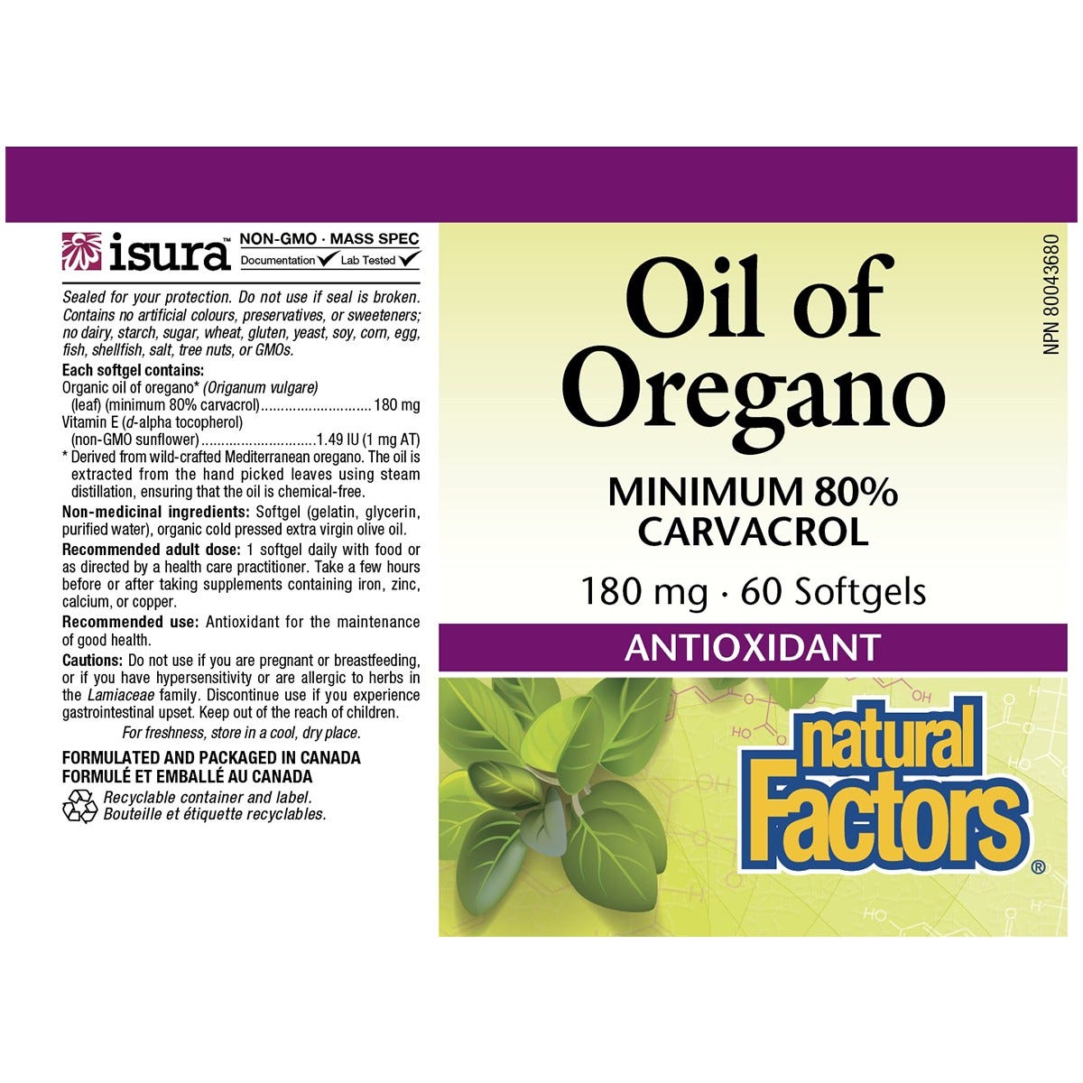 Natural Factors Oil of Oregano 180mg 60 Softgels