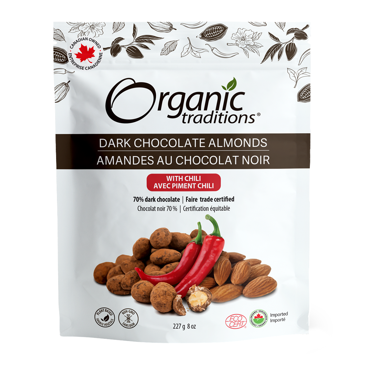 The dark chocolate almonds with chili are my new go-to snack. The balance of sweet and spicy is just right, and I love that they are organic.