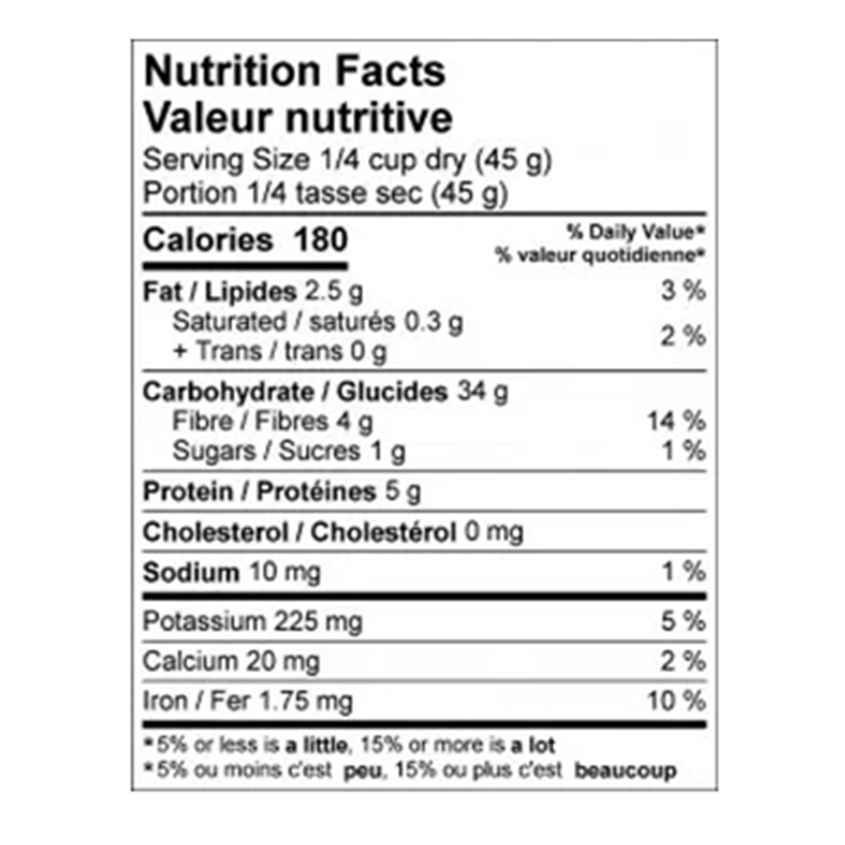 Serving Size 1/4 cup dry (45 g)