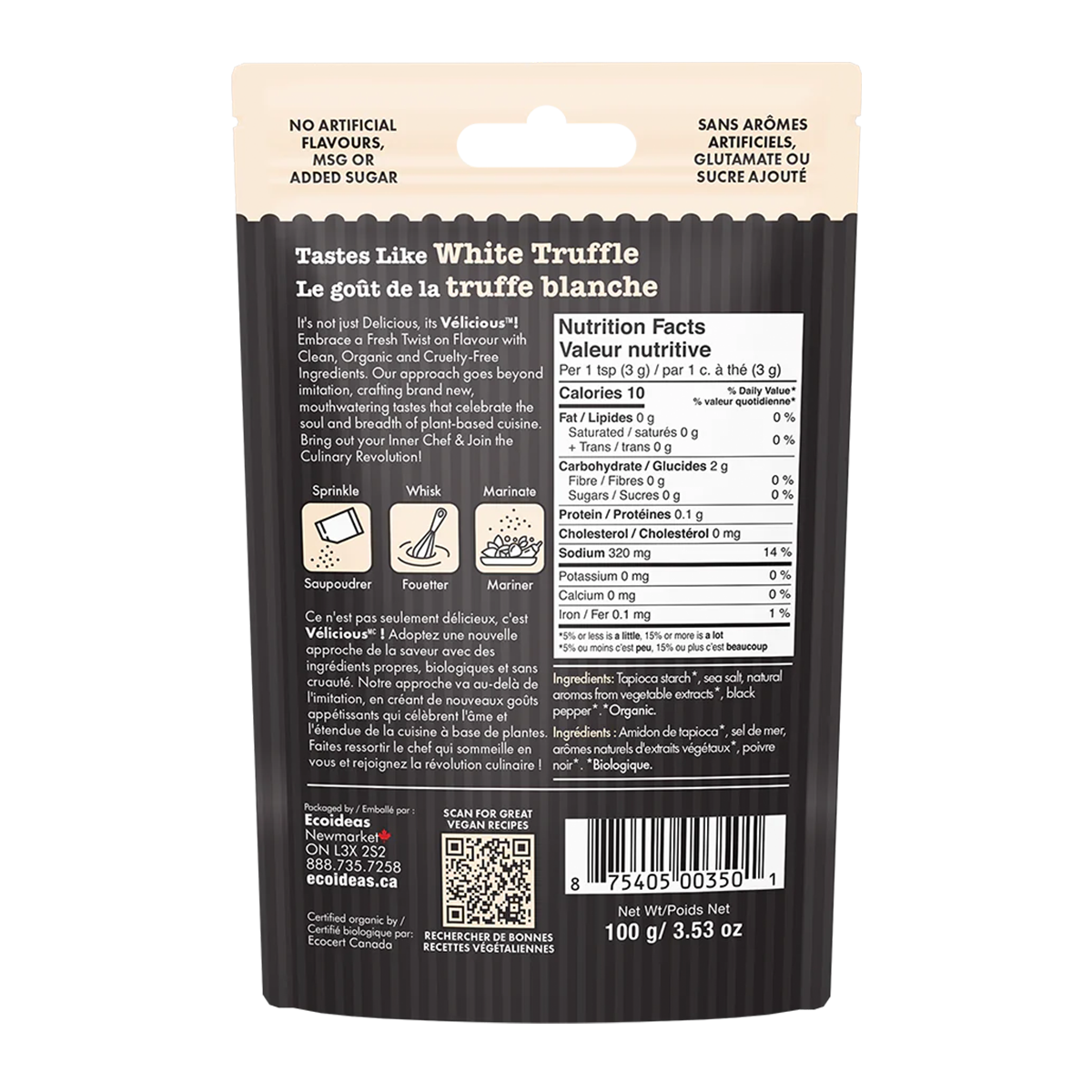 Tapioca starch*, sea salt, natural aromas from vegetable extracts*, black pepper*. *Organic.