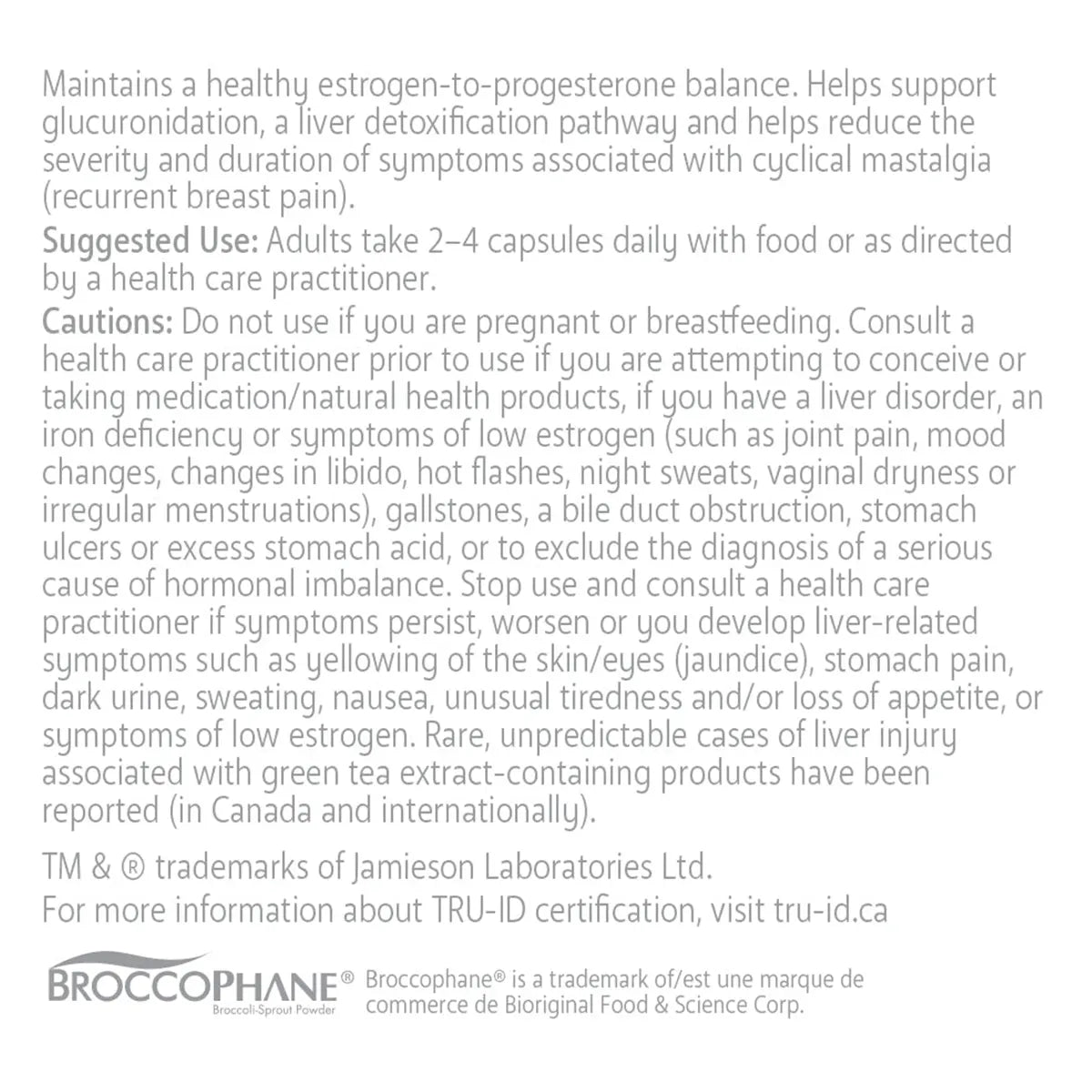 Do not use if you are pregnant or breastfeeding. Consult a health care practitioner prior to use if you are attempting to conceive or taking medication/natural health products, if you have a liver disorder, an iron deficiency or symptoms of low estrogen (such as joint pain, mood changes, changes in libido, hot flashes, night sweats, vaginal dryness or irregular menstruations), gallstones, a bile duct obstruction, stomach ulcers or excess stomach acid, or to exclude the diagnosis of a serious cause of hormonal imbalance. Stop use and consult a health care practitioner if symptoms persist, worsen or you develop liver-related symptoms such as yellowing of the skin/eyes (jaundice), stomach pain, dark urine, sweating, nausea, unusual tiredness and/or loss of appetite, or symptoms of low estrogen. Rare, unpredictable cases of liver injury associated with green tea extract-containing products have been reported (in Canada and internationally).