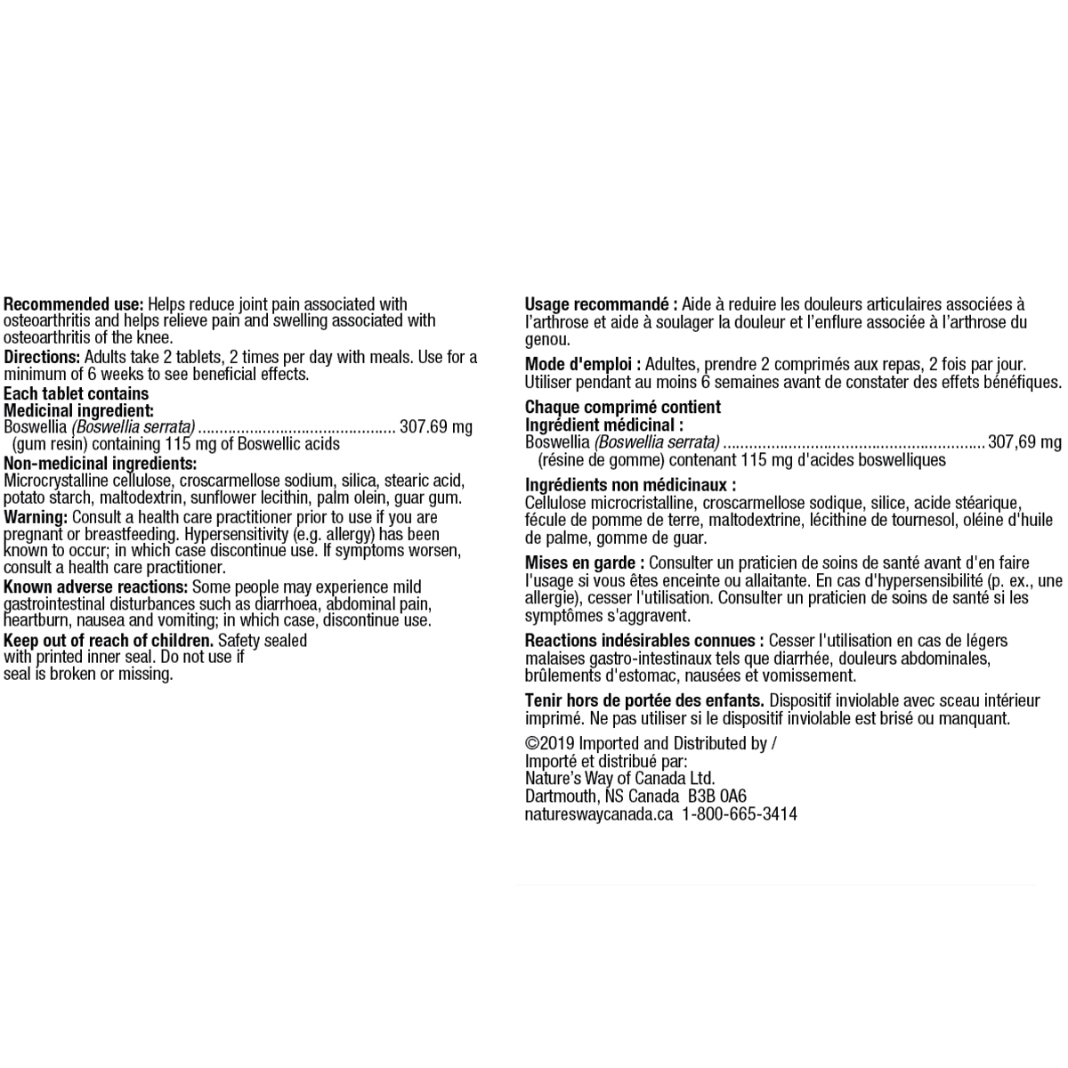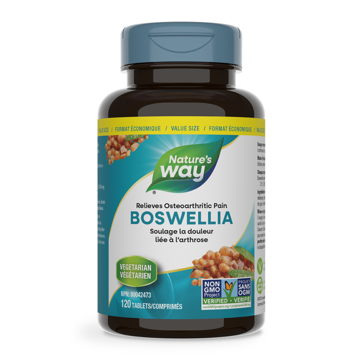 Nature's Way Boswellia helps reduce joint pain associated with osteoarthritis and helps relieve pain and swelling associated with osteoarthritis of the knee.