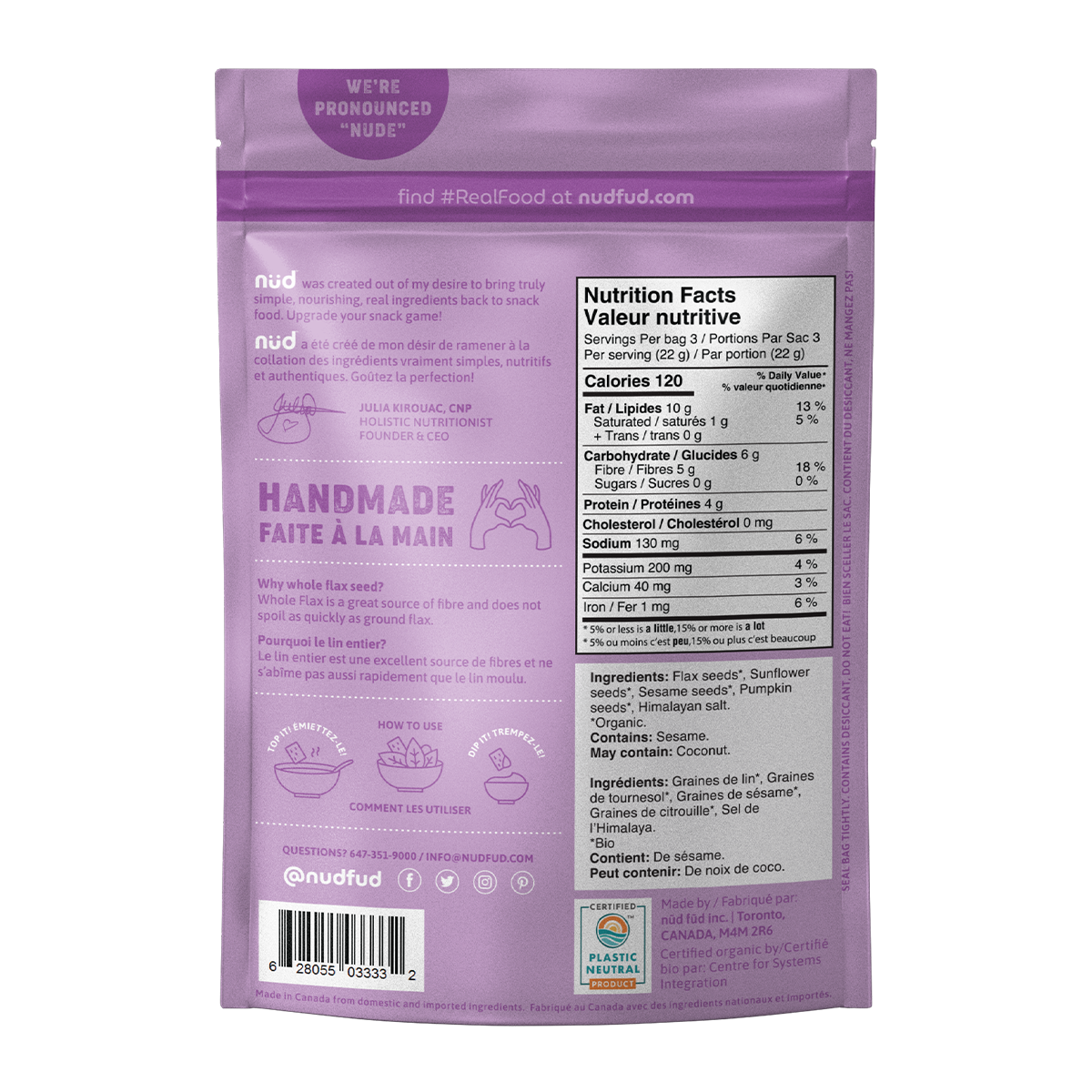 Made from only pure, no BS ingredients like activated golden flax, pumpkin, sesame and sunflower seeds.