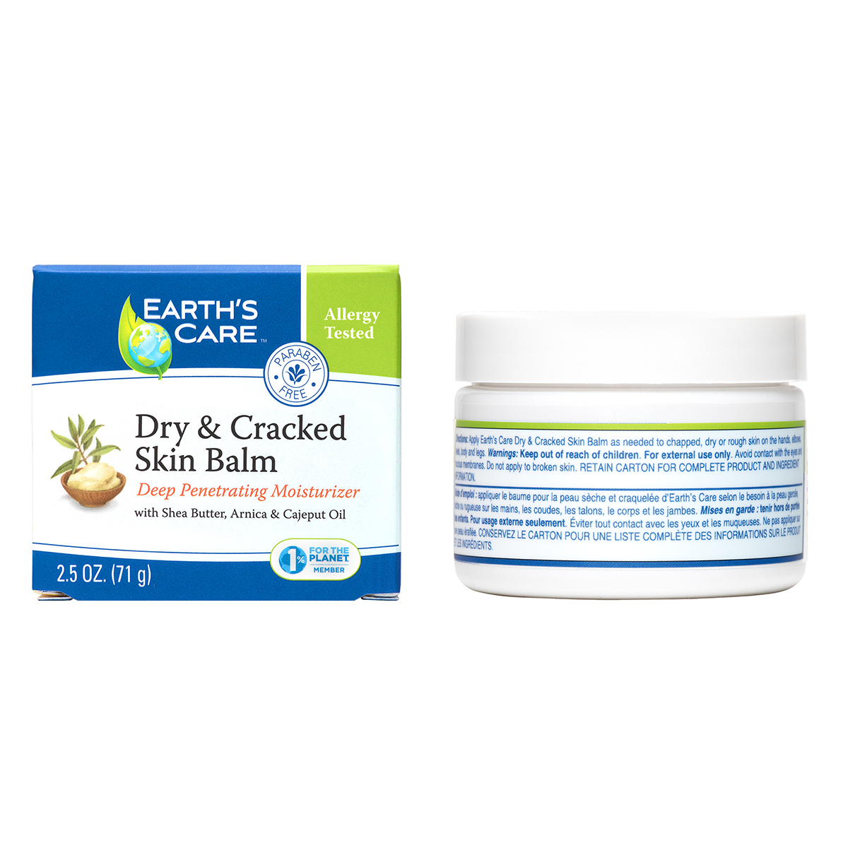 Apply Earth's Wellness-Car-e Dry & Cracked Skin Balm as needed to chapped, dry or damaged skin on the hands, elbows, heels, body and legs.