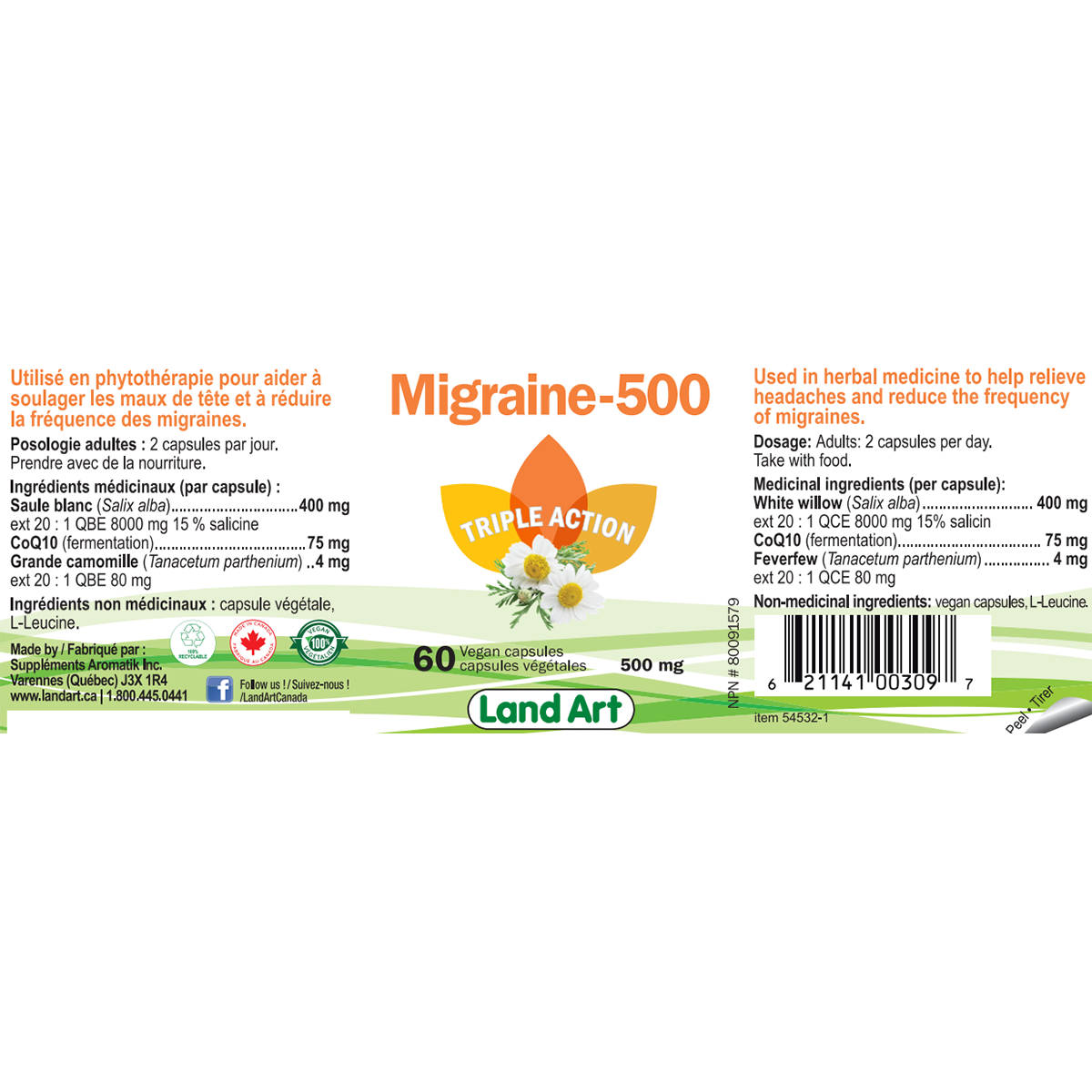 Unfortunately, migraines are often accompanied by nausea and vomiting, Land Art's triple-action formula has been designed to prevent migraines and symptoms. The three active ingredients in the formula each provide benefits.