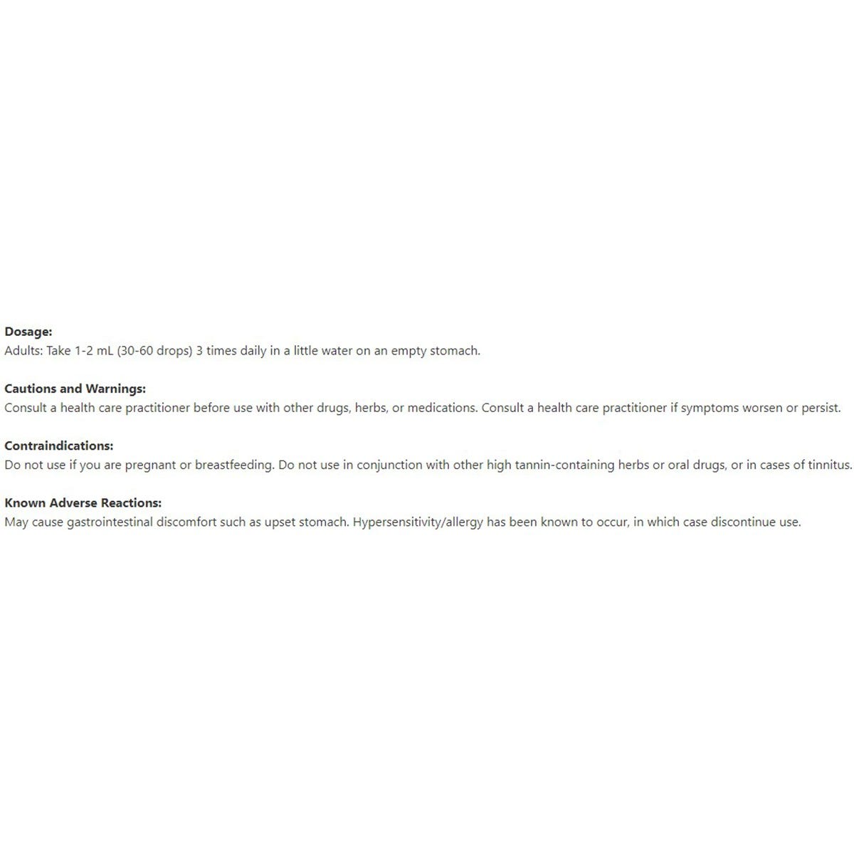 Do not use if you are pregnant or breastfeeding. Do not use in conjunction with other high tannin-containing herbs or oral drugs, or in cases of tinnitus.