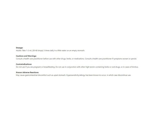 Do not use if you are pregnant or breastfeeding. Do not use in conjunction with other high tannin-containing herbs or oral drugs, or in cases of tinnitus.