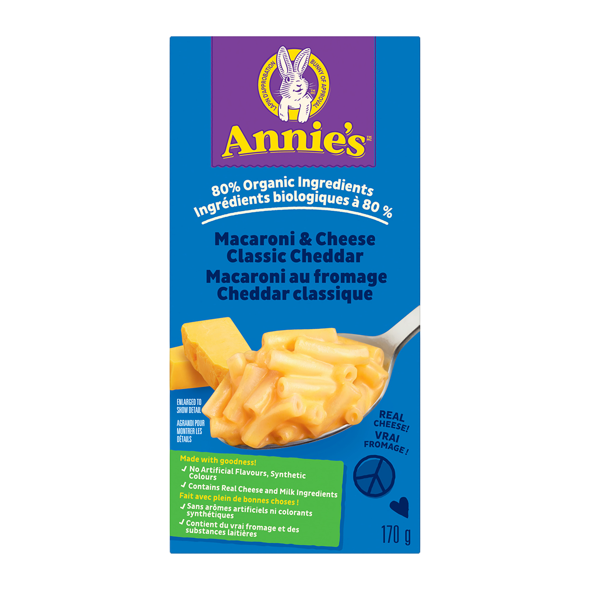 You can never go wrong with a classic! THis Classic Cheddar Mac & Cheese is a flavour-packed mac made the Annie’s way – without artificial flavours or synthetic colours. With real cheese goodness, transform weeknight dinners into easy, cheesy wins for all.
