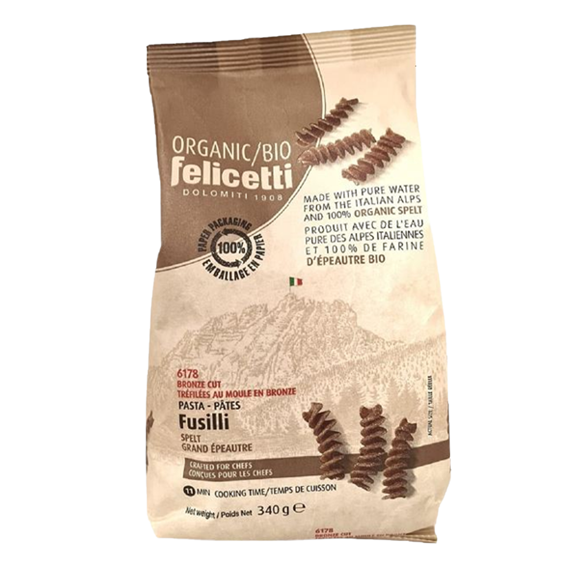 The spelt fusilli shape of this pasta is fun and adds a twist to classic recipes.