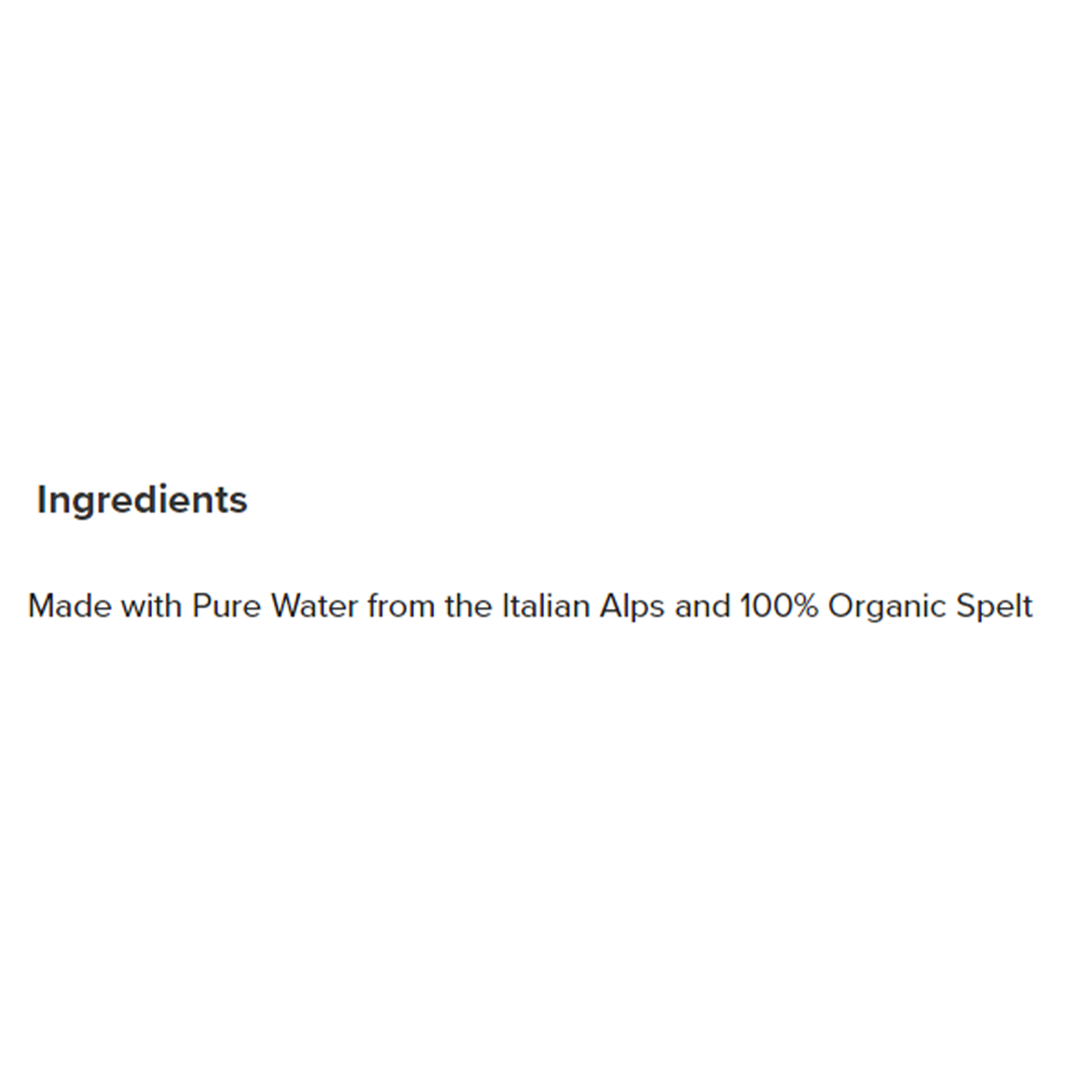 Made with Pure Water from the Italian Alps and 100% Organic Spelt.